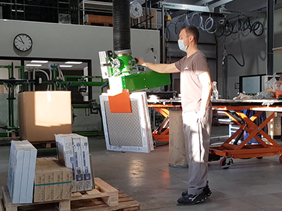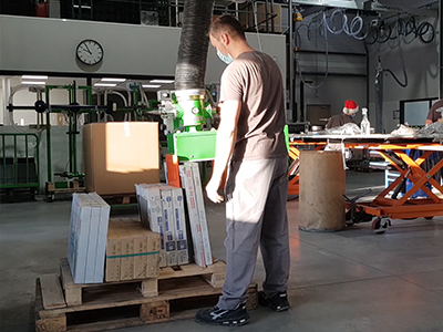 Sa particularité réside dans son système de serrage mécanique qui garantit un maintien ferme des charges sans effort pour l’opérateur, tout en préservant l’intégrité des carreaux. Grâce à l’ouverture réglable et aux surfaces de contact adaptées, il est possible de saisir facilement différents formats de carreaux ou de paquets, puis de les lever, déplacer et positionner avec une grande stabilité. Une fois la charge prise, l’opérateur peut la guider horizontalement comme si elle flottait, en réduisant considérablement les efforts de manutention.